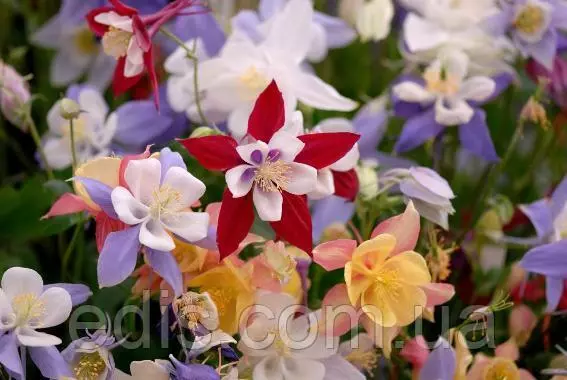 Аквілегія сумішАквілегія суміш має різнокольорове забарвлення і зробить клумби або вазони красивими і оригінальними, прикрасить своїм вишуканим виглядом прибудинкові ділянки, міські парки. Багаторічна рослина отримало широке поширення на всій території України. Часто даний квітка вибирається ландшафтними дизайнерами для посадки біля водойм або фонтанів.