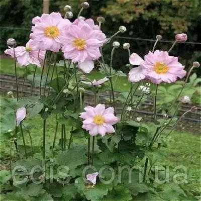 Саджанці багаторічних квітів: Анемона японська Konigin CharlotteБагатолітня трав'яниста рослина сімейства жовтцеві заввишки до 100 см. Цвіте рясно у серпні-вересні. Квітки до 8 см. у діаметрі, рожеві. Листя прикореневе, на довгих черешках, густоопушене. Округлі куртинки ажурного листя анемони власними силами декоративні.