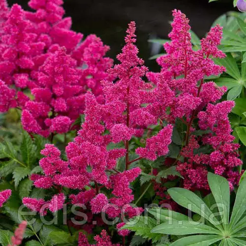 Астильба RubinСуцвіття дуже великі, яскраві та ароматні — ідеальні у букетах. Висаджувайте відразу кілька сортів, щоб досягти яскравого та різнокольорового цвітіння.
