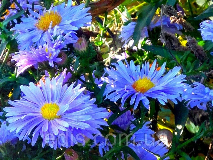 Айстра багаторічна Lady in Blue Голландський сорт із небесно-синіми напівмахровими квітками з яскраво-жовтою серцевиною. Висота куща 50-60 див. Кущ густі, добре розгалужений, цвіте з середини серпня до зими.Оплата та доставка
