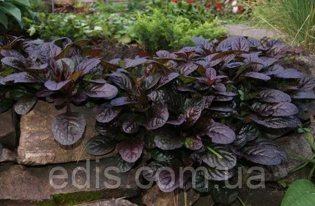 Грунтопокривні багаторічні рослини для саду: Живучка повзуча АтропурпуреаАтропурпуреа – сорт аюги з темною фіолетово-смарагдовим листям і яскраво-синіми квітками. У різні періоди сезону і в залежності від освітленості ділянки листя змінює відтінки, додаючи бронзового або пурпурного, завдяки чому килим з живучки Атропурпуреа виглядає мальовничо.