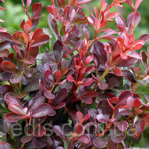 Саджанці декоративних чагарників: Барбарис оттавский Silver MilesЗабарвлення листя насичений фіолетово-рожевий.