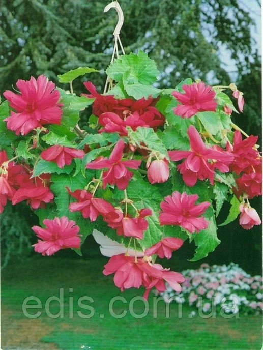 Бегонія Ампельна каскад Рожева В открытый грунт ампельную бегонию высаживают, когда минуют заморозки и после обязательного закаливания растений. Бегонии любят богатые органикой, воздухопроницаемые почвы. Для успешного развития растений необходимо поддерживать влажность почвы, избегая при этом застоя воды. С наступлением сентября подкормки прекращают. Поздней осенью постепенно начинает отмирать наземная часть растения. После гибели от заморозков или усыхания верхней части растения, клубни выкапывают, очищают от остатков и земли. Ампельної бегонією прикрашають і садові клумби і квітники міст, селищ, ампельні форми бегоній просто ідеально підходять для вирощування в контейнерах, підвісних корзинах і горщиках. На вулиці кущі ампельних бегоній особливо вигідно виглядають в контейнерах піднятих високо над землею. А якщо посаджені рослини різних забарвлень, то це стає схожим на салют, тільки з живих квітів.Оплата та доставка