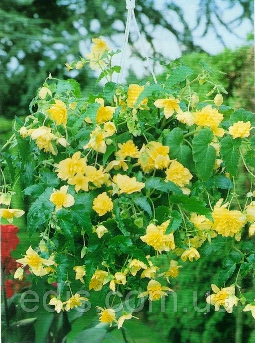 Бегонія Ампельна каскад Жовта У відкритий грунт ампельну бегонію висаджують, коли мине загроза заморозків і після обов'язкового загартовування рослин. Бегонії люблять багаті органікою, повітропроникні грунту. Для успішного розвитку рослин необхідно підтримувати вологість грунту, уникаючи при цьому застою води. З настанням вересня підгодівлі припиняють. Пізньої осені поступово починає відмирати наземна частина рослини. Після загибелі від заморозків або всихання верхній частині рослини, бульби викопують, очищають від залишків та землі. Ампельної бегонією прикрашають і садові клумби і квітники міст, селищ, ампельні форми бегоній просто ідеально підходять для вирощування в контейнерах, підвісних корзинах і горщиках. На вулиці кущі ампельних бегоній особливо вигідно виглядають в контейнерах піднятих високо над землею. А якщо посаджені рослини різних забарвлень, то це стає схожим на салют, тільки з живих квітів.Оплата та доставка