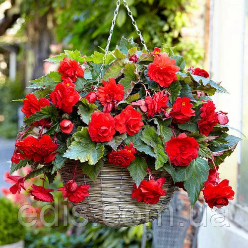 Бегонія Червона Ампельна У відкритий грунт ампельну бегонію висаджують, коли мине загроза заморозків і після обов'язкового загартовування рослин. Бегонії люблять багаті органікою, повітропроникні грунту. Для успішного розвитку рослин необхідно підтримувати вологість грунту, уникаючи при цьому застою води. З настанням вересня підгодівлі припиняють. Пізньої осені поступово починає відмирати наземна частина рослини. Після загибелі від заморозків або всихання верхній частині рослини, бульби викопують, очищають від залишків та землі. Ампельної бегонією прикрашають і садові клумби і квітники міст, селищ, ампельні форми бегоній просто ідеально підходять для вирощування в контейнерах, підвісних корзинах і горщиках. На вулиці кущі ампельних бегоній особливо вигідно виглядають в контейнерах піднятих високо над землею. А якщо посаджені рослини різних забарвлень, то це стає схожим на салют, тільки з живих квітів.Оплата та доставка