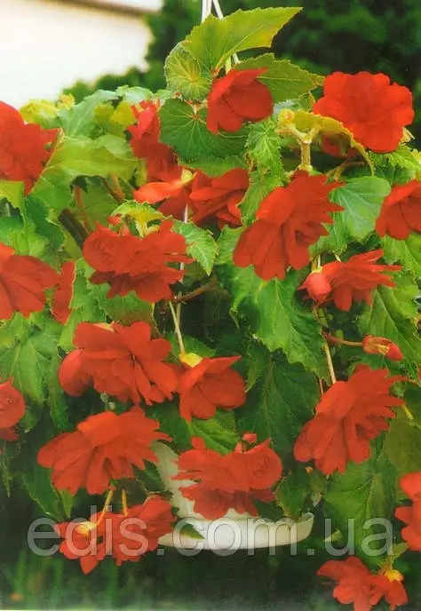 Бегонія Червона Ампельна У відкритий грунт ампельну бегонію висаджують, коли мине загроза заморозків і після обов'язкового загартовування рослин. Бегонії люблять багаті органікою, повітропроникні грунту. Для успішного розвитку рослин необхідно підтримувати вологість грунту, уникаючи при цьому застою води. З настанням вересня підгодівлі припиняють. Пізньої осені поступово починає відмирати наземна частина рослини. Після загибелі від заморозків або всихання верхній частині рослини, бульби викопують, очищають від залишків та землі. Ампельної бегонією прикрашають і садові клумби і квітники міст, селищ, ампельні форми бегоній просто ідеально підходять для вирощування в контейнерах, підвісних корзинах і горщиках. На вулиці кущі ампельних бегоній особливо вигідно виглядають в контейнерах піднятих високо над землею. А якщо посаджені рослини різних забарвлень, то це стає схожим на салют, тільки з живих квітів.Оплата та доставка