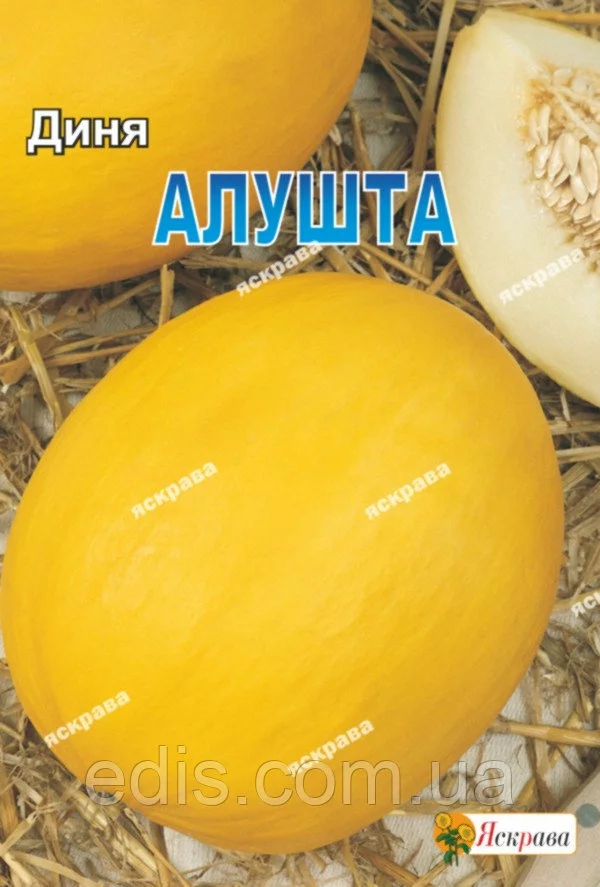 Диня Алушта 20 гРанньостиглий, стійкий до повітряної і гунтовой посухи, сорт транспортабельний. Плоди дозрівають через 77 днів, після появи паростків. Плоди овальны, слабосморщенные, масою 1,8-2кг Забарвлення стиглих плодів з червоно-оранжевими плямами. М'якоть біла, товста, солодка, соковита з динним ароматом. Використовується у свіжому вигляді. Теплолюбна культура, тому насіння висівають у грунт при наявності температури +18-20 С. Норма висіву 2 насінини на 1 пог.м., глибина воронки 3-4 см, ширина міжрядь 70-90см.Оплата та доставка