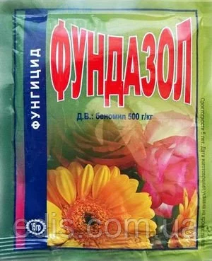 Фундазол - фунгіцид та протруйник з широким спектром дії проти великої кількості грибних хвороб: борошниста роса, бура плямистість, парша, сіра і коренева гнилі, оїдіум, антракноз, бактеріоз, фузаріоз, кила, які знищують насіння і листя рослин.Діюча речовина: беномілу.