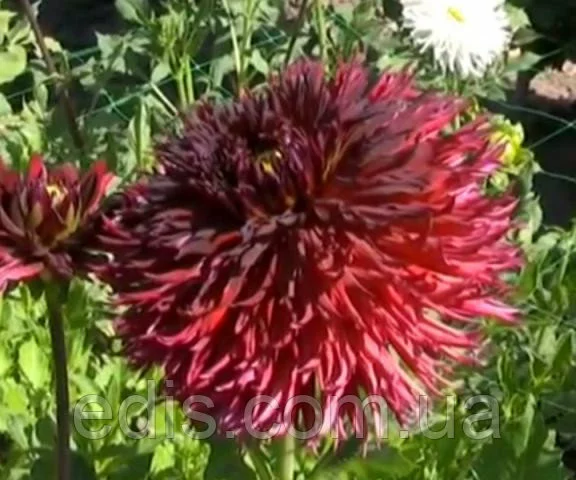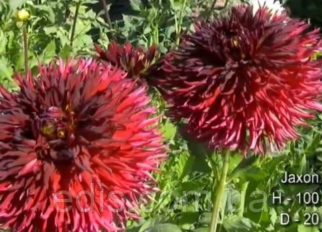 Жоржина бахромчата Jaxon.Бахромчаті жоржини Jaxon мають темно-червоне забарвлення і ефектно виглядають як у садах, так і в зрізку. Її посічені пелюстки створюють пишне суцвіття, що володіє особливою вишуканістю і шармом.
