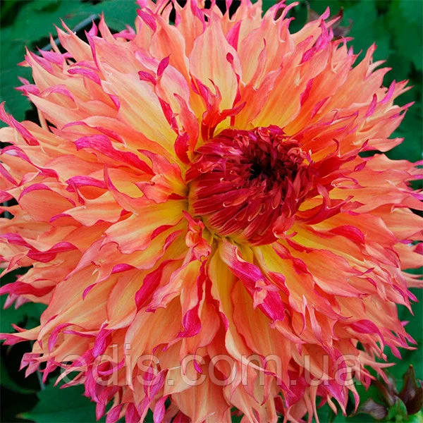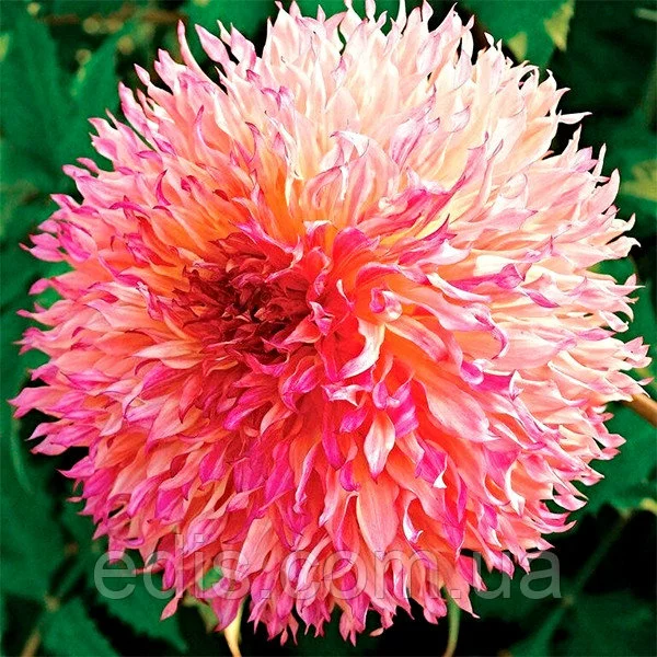 Жоржини: Жоржини Фимбриата Myrtle's FollyДвоколірна жоржина фимбриата Myrtle's Folly привертає увагу високим зростом і розкішним пухнастим квіткою жовто-рожевого забарвлення. Даний сорт цінується за стійкість і тривале збереження свіжості в букетах серед ландшафтних дизайнерів, флористів і садівників.