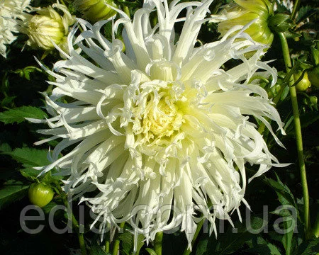 підстава квіток має зеленувато-жовтий відтінок, пелюстки - білі;