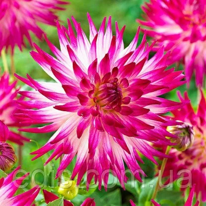 Жоржини: Жоржини Кактусова Dutch ExplosionГеоргина кактусовая Dutch Explosion – это один из новых сортов, который не оставит равнодушным никого, кто решит заняться его выращиванием. Соцветия собраны из белых лепестков, которые свернуты в трубочку, кончики окрашены в розовый цвет. Оригинальный окрас и нежный аромат ценят в этом цветке садоводы и флористы.