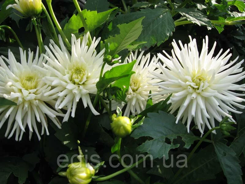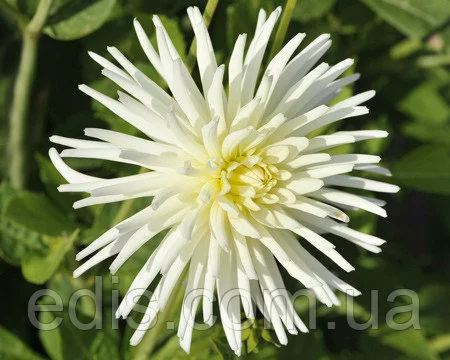Жоржини: Жоржини кактусова Playa BlancaБахромчата жоржина білосніжного кольору Playa Blanса – це один з найбільш розповсюджених серед флористів і садівників на території України. Сорт має великі з голчастою формою квіти розміром до 25 см, а довжина стебла при цьому не менше 80 див.
