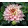 Жоржина декоративна патіо Галері Сальвадор Ще один чудовий сорт з карликової серії Галері. Всі сорти цієї серії придатні для створення приголомшливих квітучих бордюрів, для вирощування у вазонах і балконних ящиках. Всі низькорослі сорти зацвітають набагато раніше високорослих сортів і цвітуть рясно і безперервно до самих заморозків. Висота куща 35 см. Діаметр квітки: 10-15 см. Колір світло-рожевий з ліловими кінчиками, від центру проглядається вершково-жовта підсвітка. Оригінатор: Verwer, Gebr. (Нідерланди), 1994 рік.Оплата та доставка