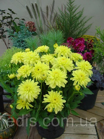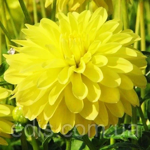 Жоржина бордюрна Мелоді Латин Яскравий сорт з популярної сортосерии Melody Нідерландської селекціонера Герба Вервера. З цих низькорослих жоржин можна створити приголомшливі бордюри вздовж доріжок, можна вирощувати їх у вазонах і балконних ящиках, прикрашати ними патіо і зимові сади. Висота куща: 50 см Забарвлення: Лимонно-жовта з більш темною серединою, пелюстки жолобчасті, діаметр квітки 11 див. Якщо подращівают бульби з квітня, цвітіння починається в кінці травня і триває до пізньої осені. Кущ суцільно покритий квітами безперервно. Оригінатор: Gebr Verwer, Нідерланди, 1997 рік.Оплата та доставка
