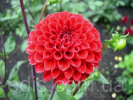 Жоржини: Жоржини Помпонная VikingЖоржина Вікінг відноситься до групи помпонных сортів (Pompon dahlias). Червона помпонная жоржина Viking розпускається кожен рік в кінці липня і цвіте до перших осінніх заморозків, радуючи яскравими фарбами. Її вишукана форма улюблена багатьма садівниками і флористами.