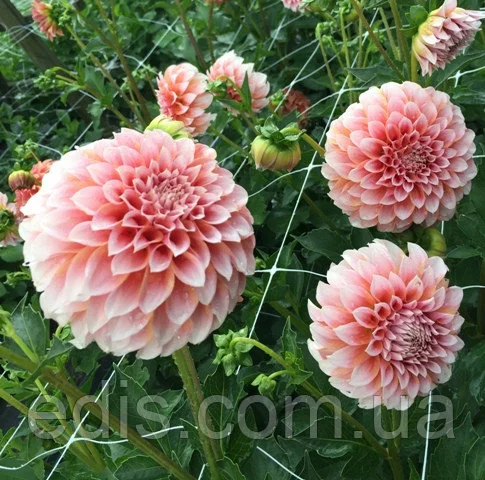 Жоржини: Жоржини декоративна високоросла Peaches and CreamЖоржина Peaches and Cream відноситься до новим декоративним високорослим сортам, виведеним голландськими селекціонерами. Забарвлення являє собою комбінацію персикового, кремового, ванільного і рожевого кольору.