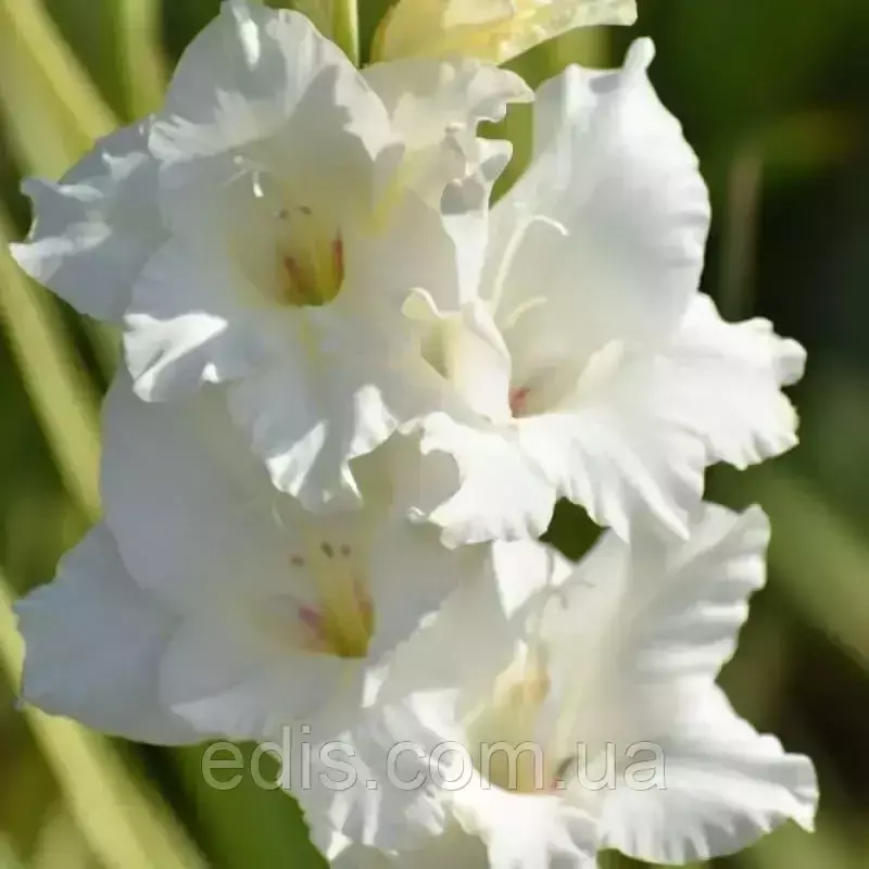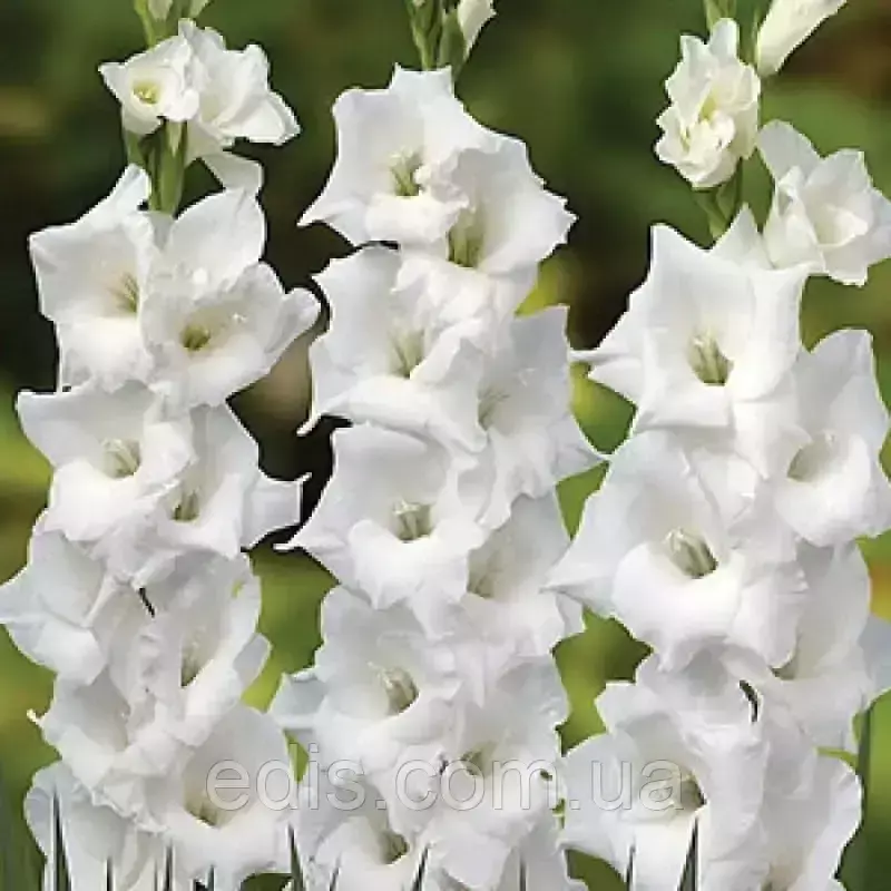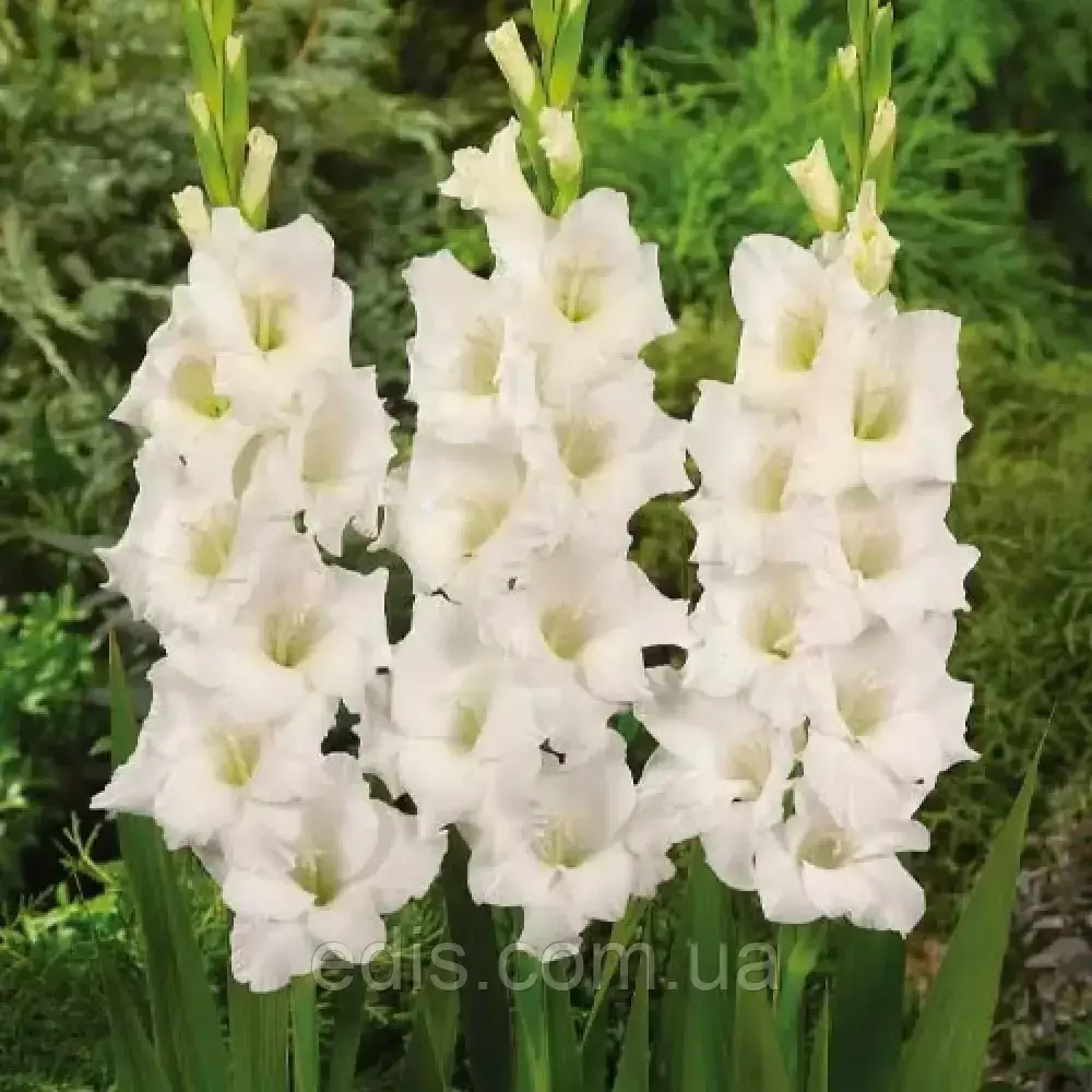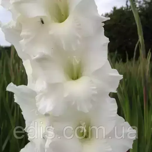 Гладіолус Великоквітковий SnowboardЧарівна біла красуня, яка привнесе в ваш сад неповторний візуальний ефект. Великі, чисто білі квіткові колоски гладіолусів Сноуборд надають клумбі особливої привабливості, чудово заповнюючи прогалини в бордюрі багаторічним білим кольором.