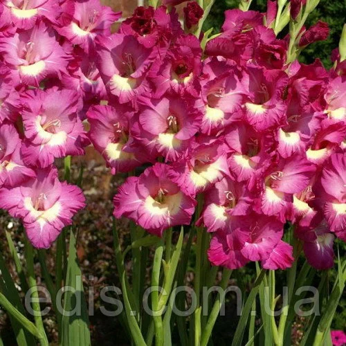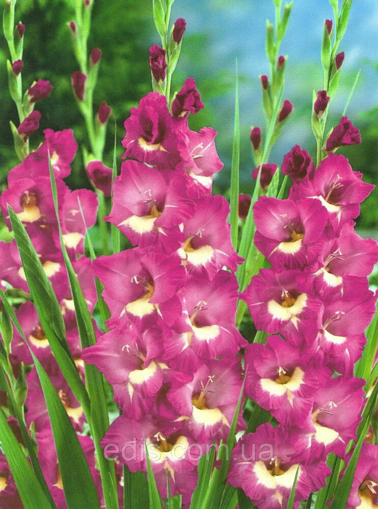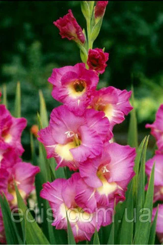 Гладіолус Великобарвний Windsong Гладіолус (шпажник) — багаторічна садова квітка родини Ірисові. Великобарвикові сорти досягають заввишки до 140 см і мають на квітчастому багатощі квіток до 14 см. у діаметрі. Підземна частина являє собою плоску круглу бульбашку від молочно-білого до темно-фіолетового кольору у різних сортів. Колір бульбашки безпосередньо пов'язаний із забарвленням квіток. З однієї бульблековиці зазвичай виростає 1 квітонос, великі цибулини дають 2 стрілки. Оптимальний для вирощування гладіолусів вважається слабокислим ґрунтом, pH 6,5-6,8. Для висаджування гладіолусів: переважно світлі, захищені від протягів зони з добре дренованим ґрунтом. Велика цибулина гладіолуса заглиблюється на 10-15 см, дрібна — на 8-10 см. Великі сажаємо на відстані 15 см одна від одної, дрібні — за 7-8 см. Відстань між рядами — 20-25 см. Посадка гладіолусів відбувається з кінця квітня до середини травня. Раннебарвлювальні гладіолуси зацвітають у середині липня, середні — у середині серпня, пізні — у вересні. Сорту гладіолусів, що висаджуються в садах, не зимують у відкритому ґрунті. Наприкінці квітня цибулини рослини заведено висаджувати у відкритий ґрунт, а на початку жовтня — збирати на зимівку. Гладіолуси здатні витримати короткочасне похолодання до мінус 5 °C.Оплата та доставка