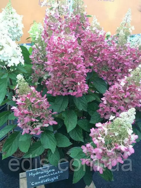 Гортензія волотиста CandlelightОпис: гортензія волотиста – гарно і довго квітучий листяний чагарник. Конусоподібні великі суцвіття з'являються на вершинах пагонів у липні і зберігають повну декоративність до середини осені. Вертикальні пагони, міцні, у даного сорту – красивого червоно-бурого кольору.