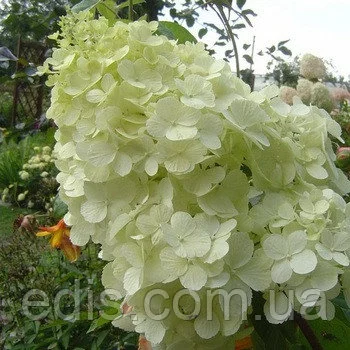 Саджанці красивоцветущих чагарників: Гортензія Полярний ВедмідьДуже відомий, можна сказати, класичний сорт волотисте гортензії – Полар Бір (перекладається як Полярний ведмідь). Кущ заввишки до 170 см Квітки пірамідальні, великі, білі, до осені набувають рожевий рум'янець.