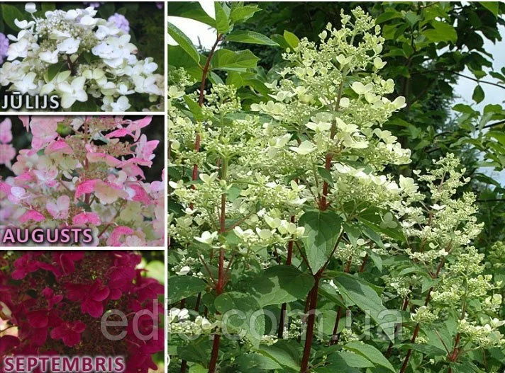 Гортензія Wim's Red Гортензия метельчатая Wim's Red.Новинка.Куст прямостоячий, высотой и диаметром 150-200 см, хорошо разветвлённый, побеги сильные.Выведена селекционером Wim Rutten и сразу же стала мировой сенсацией, т.к этот сорт трижды меняет окрас соцветия - от белого в июле через розовый в августе в темно красный с сентября. Гортензия метельчатая Wim's Red имеет очень крупное соцветие - до 30 - 35 см в длину с чарующим ароматом меда. Но это еще не все его достоинства. Этот сорт так же имеет очень длинный период цветения - со средины июня по октябрь. Сорт устойчивый к болезням. Зона морозостійкості: 5 (-29 / -23 °C). На зиму потребує легкого укриття. Місце для гортензії краще вибрати притінене. Гортензії люблять пухкий, вологий, кислий грунт.Оплата та доставка