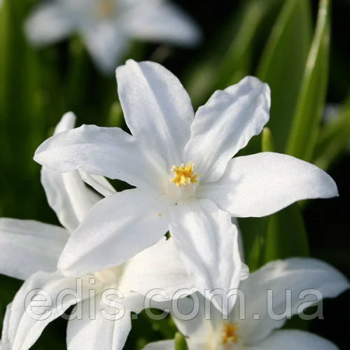 Цибулини квітів оптом: Хионодокса Форбса АльбаЗастосовують для створення ранніх клумб в саду, прикраси бордюрів і рабаток. Гармонійно поєднується з пролесками і крокусами.