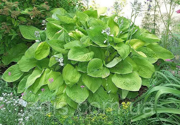 Саджанці багаторічних садових рослин з відкритою кореневою системою: Хоста August Moon (Огест Мун, Серпень Мун).Дуже знаменитий сорт, просто класичний сорт з жовтою серії, претендент на приз "Хіт продажів" з тих пір, як хости взагалі увійшли в садову моду.