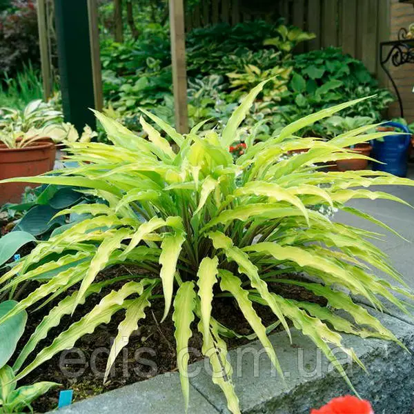 Хоста Curly Friesвисота куща близько 30 см, діаметр до 50 см;