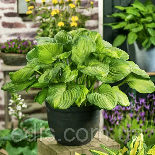 Саженцы многолетних садовых растений с открытой корневой системой: Хоста GuacemoleПопулярний сорт зі швидкими темпами росту і яскравим забарвленням великого листя. Кожна пластина розміром 28 на 21 см з добре помітними прожилками. Навесні молоді листочки жовті, розкрившись, набувають яблуневого відтінку з темнішою облямівкою. Максимально декоративний ефект у півтіні з двома-трьома годинами сонячного світла вранці, але при належному догляді зможе рости в тіні та на сонці.