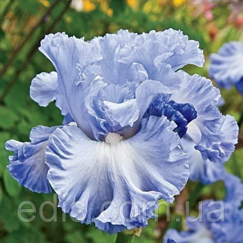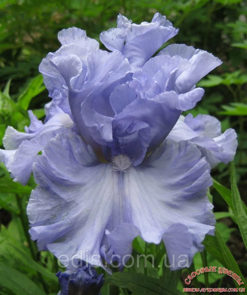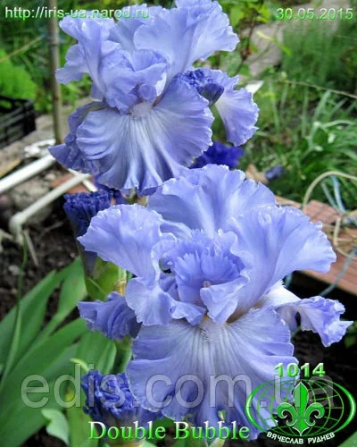 Iris Germanica (Бородатий) Double Bubble - морська піна Один з кращих сортів у синій гамі і чистоти кольору і по гофрировке. Назва російською: Дабл Бабл Квітка велика, гофрований, волошкового кольору, на фолах більше світла (майже білий) люміната і білі борідки. Висота квітконосу: 90 див. Кількість бутонів на квітконосі: 8 шт. Термін цвітіння: середній. Оригінатор - Гіо, 1998, США.Оплата та доставка