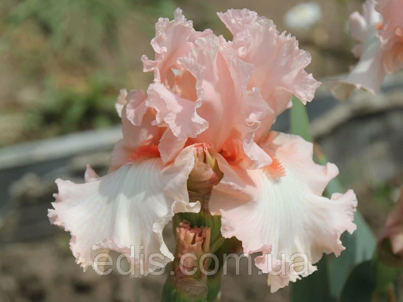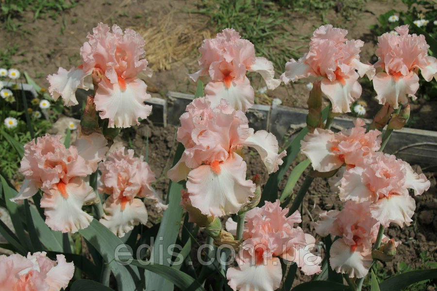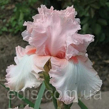 Iris Germanica (Бородатий) Kentucky Woman - сама ніжністьКвітка: гофрований, стандарти - чистого світло-рожевого кольору, фоли світло-рожеві з більш світлою люминатой. Борідка яскраво-коралова.