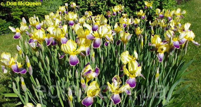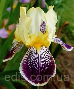 Ірис бордюрний середньорослий Лорелея Цікавий історичний сорт, відмінні риси якого - на верхніх частках іноді проявляється відбиток малюнка нижніх часток і іноді можна побачити повторне цвітіння восени. Яскраві, контрастні кольори, гарний сітчастий малюнок цього ірису приваблюють погляд, завдяки цьому ірис Лорелея популярний в бордюрних посадках. Також цей сорт дуже невибагливий, завжди рясно цвіте, це хороший сорт для масових посадок в громадських садах і парках. Верхні частки лимонно-жовті, нижні - оксамитові фіолетові з великим, густим сітчастим малюнком і жовтим обідком. Висота квітконосу: 60-70 див. Квітка 12 див., класичної форми. На квітконосі зазвичай 3-4 квітки. Аромат легкий, солодкий. Цвіте в середні строки (кінець травня - початок червня) протягом 20 днів.Оплата та доставка