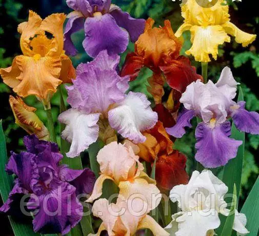 Саджанці багаторічних квітів: Ірис бородатий високорослийНабір високорослих бородатих ірисів – прекрасна нагода придбати саджанці з великою знижкою. У процесі садіння, викопування, упаковки саджанців трапляється, що вчасно не підписали, забули, загубили назва сорту деленко. Такі деленко ірисів ми віддаємо в цей набір з неймовірною знижкою.
