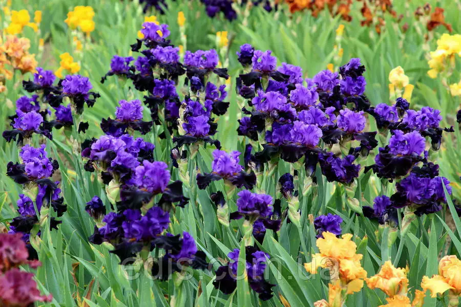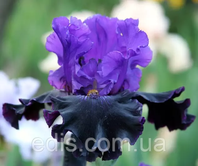 Ірис бородатий Грозова Ніч - вітчизняний шедевр у своїй кольоровій гамі Стандарти: бузково-сині. Фоли: оксамитові, чорно-фіолетові, з пурпурним підсвічуванням з нижньої сторони. Борідка оранжево-коричнева. Пелюстки сильно гофровані. Висота: 90 див. Оригінатор: Тараненко Дмитро, 2011, Україна.Оплата та доставка