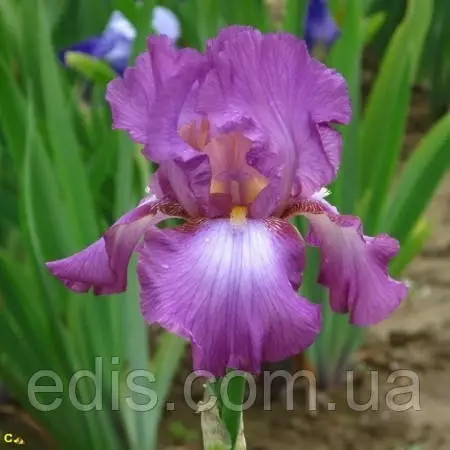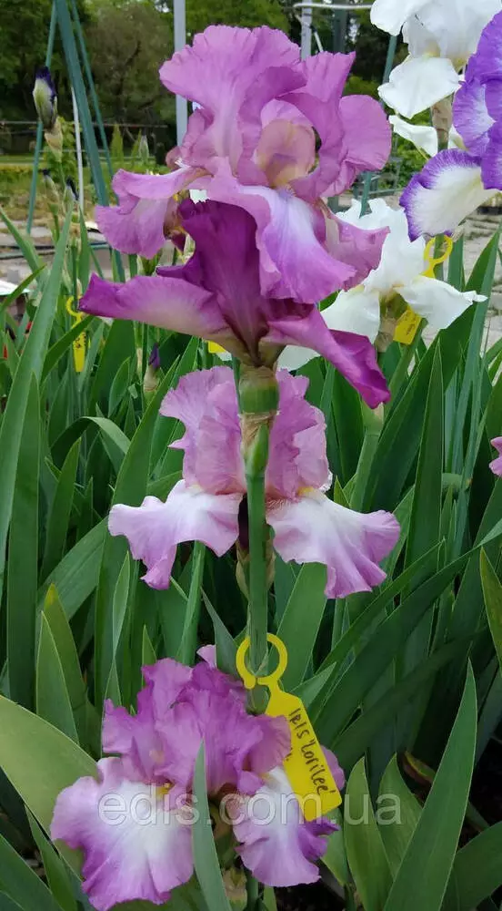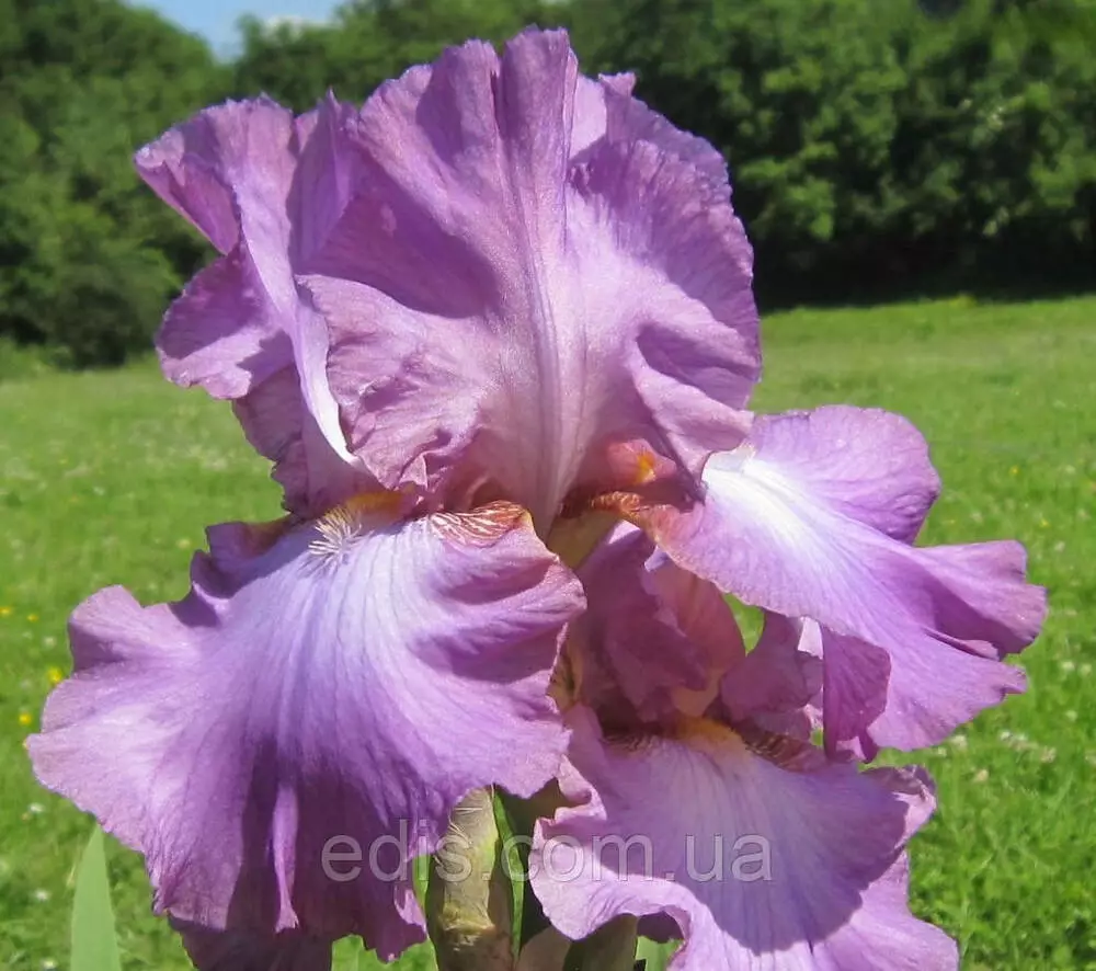 Саджанці багаторічних квітів: Ірис високий бородатий Lorilee (Лорілі)Велика, гофрована квітка приємного орхідейно-бузкового кольору з ліловими прожилками та переливами. Навколо помаранчевої борідки світлий спалах.