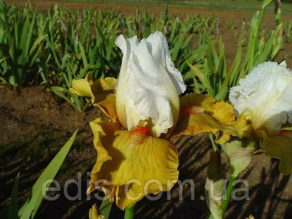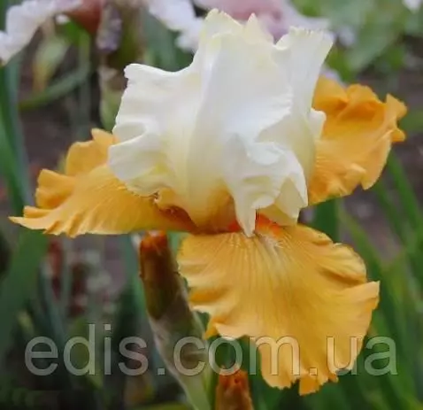 забарвлення: стандарти білі, фоли медово-жовті, борідки мандариново-оранжеві;