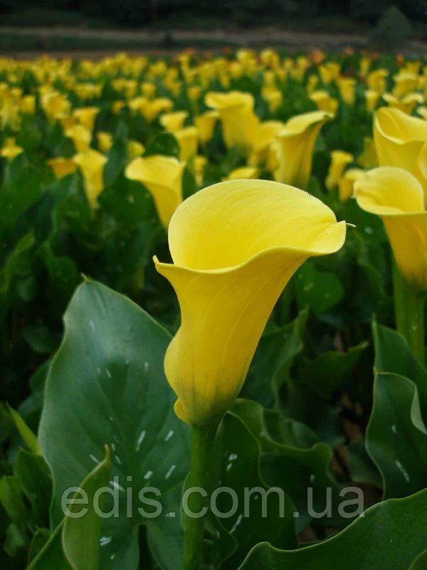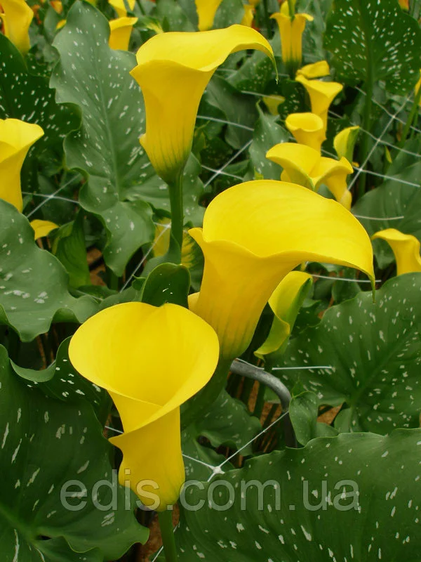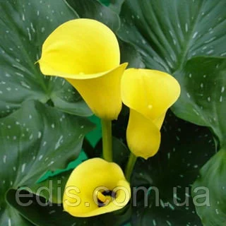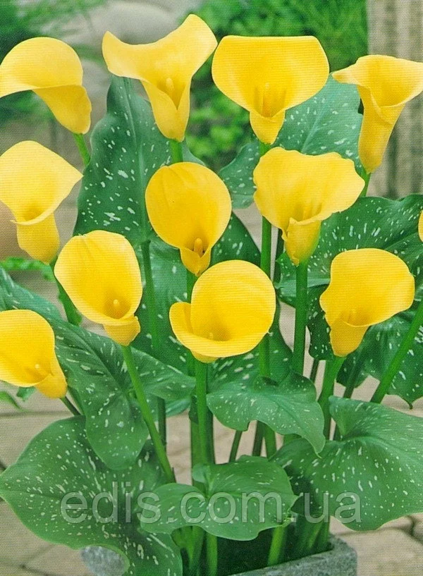 Калла Cameo Посадка калл цибулинами — це найбільш простий спосіб швидко отримати гарне квітуче рослина. Воліють кали відкриті просторі ділянки та родючі ґрунти, але бажано затінювати їх в найгарячіші денні години. Грунт повинна бути кисла або хоча б слабокисла, потрібен хороший дренаж, тому що застій води в коренях згубний для рослини. Висаджують садові кали на початку травня. Попередньо посадковий матеріал витримують півгодини в розчині марганцівки. Потім бульби занурюють у підготовлені лунки на глибину 5-10 см. на відстані 30-40 см. один від одного (в залежності від розміру цибулини), закопують, а місце посадки добре поливають. Привабливість цієї рослини для квітникарів не тільки в дуже великих ефектних листках і в незвичайній формі квітки, але і в тому, що вирощувати каллу можна як у саду, так і вдома, в горщику. Для цього використовують просторі контейнери або горщики: висотою до 60 см і шириною в радіусі 15-20 см. від точки росту рослини.Оплата та доставка