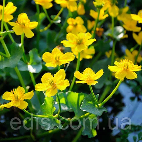 Водні, болотні, прибережні рослини: Калюжниця болотнаКалюжниця болотна - природний вид, який із зростаючою популярністю водойм в ландшафтному дизайні, зайняв почесне місце серед первоцвітів. Яскраво-зелені блискучі, округлі листочки калюжниці бадьоро показуються з-під снігу ще в лютому, на розталих галявинах. З кінця квітня близько 20 днів розквітають дрібні жовті квіточки, на які злітаються ранні метелики і бджілки.