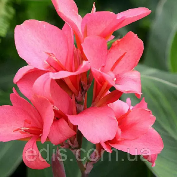 Благородный гигант: канна Pink President Массивное растение родом из Африки, Азии и Южной Америки, которое по форме напоминает миниатюрное банановое дерево. Канны привлекают не только красивыми цветами, но и крупной экзотической листвой. Благодаря крупным размерам канны хорошо смотрятся вдоль заборов и стен, всегда впечатляют групповые посадки в центре обзорной клумбы. Террасы и патио можно украсить массивными вазонами с низкорослыми и среднерослыми сортами. Интересный факт! Все части канн являются съедобными. Существуют даже кормовые сорта этого прекрасного цветка. Корневища канн используют также в народной медицине для лечения заболеваний желудка. Проводятся исследования возможности использования канн как источника биотоплива :) Высота растения - 100 см. Листва зелёная. Цветок красный, 10-12 см. в диаметре. Цветут канны всё лето до морозов. Основные требования при выращивании: солнечное место, плодородная почва, обильный полив. Глубина посадки: 15-20 см. Расстояние между растениями: 30-50 см. Для хорошего развития и созревания каннам нужно 6-8 месяцев тепла, поэтому в Украине для получения крупных цветков и хорошего созревания клубней до высадки в открытый грунт предпочтительно проращивать клубни в горшках в апреле-мае. Восени при перших морозах стебла зрізують гострим ножем, бульби викопують вилами, очищають, знезаражують фунгіцидом і зберігають всю зиму в піску, торф або тирсу при температурі 4-6 °C. Навесні бульби розділяють так, щоб на кожній частині було мінімум 2 нирки.Оплата та доставка
