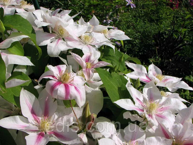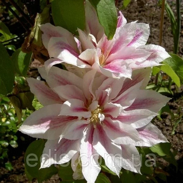 Ранній великоквіткова клематис Andromeda Оригінатор: Ken Pyne, Англія, 1994 р. Чагарникова ліана висотою 2-4 м. У травні-червні на перезимували пагонах Андромеда рясно цвіте великими зірчастими напівмахровими квітками дуже шляхетною, гармонійної форми. Основний колір пастельно-рожевий, майже білий, по центру чашолистків проходить пурпурно-малинова смуга. Пильовики світло-жовті. У серпні-вересні на пагонах річного приросту квітки прості, до 18 см в діаметрі. Чтобы любоваться весной махровыми цветами этого сорта, следует сохранить до весны прошлогодние побеги. Для этого осенью проводят щадящую обрезку на высоте 1-1,5 м. от земли. Удаляют полностью некоторые слабые, повреждённые побеги. Старые, сильно загустившиеся кусты можно с осени слегка проредить и омолодить, удалив лозу старше 3-ёх лет. Оставшиеся побеги снимают с опор, аккуратно укладывают на землю и укрывают на зиму. Весной можно дополнительно провести чистовую обрезку, укоротив перезимовавшие побеги до сильных почек на высоте 70-100 см. Высота: 3 м. Диаметр цветка: 15 см. Сила росту: помірно зростаючий сорт. Класифікаційна група: Патенс Група обрізки: 2 (слабка) Зона морозостійкості: 4 (-34 / -29 °C)Оплата та доставка