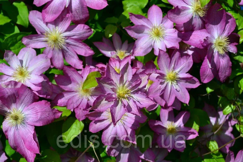 Ранній великоквіткова клематис. Темно-рожеві пелюстки зі світлою центральною смугою, пильовики світло-жовті. Можливі напівмахрові квітки на пагонах, що перезимували. Наростає повільно. Група обрізки 2(слабка).