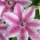 Пелюстки ніжно-рожеві з насичено малиновою смугою посередині, трохи хвилясті по краю. Пильовики бордового або пурпурного кольору.