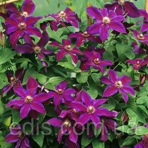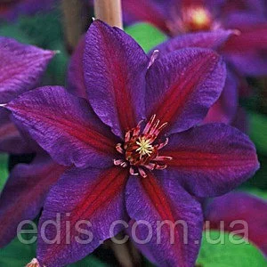 Клематис Mrs N. Thompson Клематис «Mrs. N. Thompson» - досить неординарний і екзотична квітка. Цей сорт привабливий своїм неперевершеним зовнішнім виглядом. Квітки даного сорту фіолетові з яскраво-червоною смужкою посередині і червоними тичинками. Квітки досить великі і можуть виростати до 20 см в діаметрі. Висота рослини близько 2,5 м. Клематис «Mrs. N. Thompson» цвіте з червня по вересень. Цвіте як на пагонах як поточного, так і на пагонах попереднього року. Даний сорт досить морозо - і болезнестоек. Висаджувати його слід на досить сонячної та захищеній від вітру місцевості.Оплата та доставка
