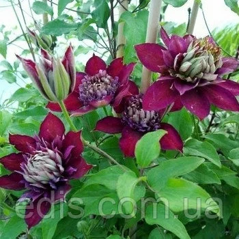 Опис: Клематис Temptation (Темптейшн)Назва цього клематиса в перекладі з англійської означає "Спокуса". Сорт ранній, невисокий, морозостійкий, невибагливий. Через невеликий кореневої системи його можна вирощувати також у великих горщиках і балконних ящиках.