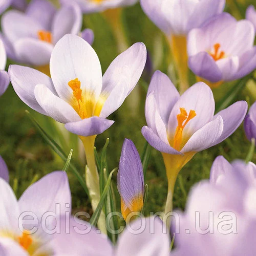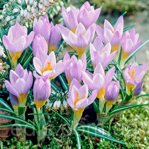 Крокус Ботанічний Firefly (Світлячок) Чарівно виглядають у ландшафтному дизайні при посадці на передньому плані чагарників, навколо дерев та в альпінаріях. Вирощування як у відкритому ґрунті, так і в горщиках. висота до 10 см; листя тонке з видимими прожилками, темно-зеленого кольору; квітки шестипелюсткові, спрямовані вгору, ніжного бузкового кольору, підсвічуються біля основи широкою плямою золотисто-жовтого та білого кольору; період цвітіння з березня до квітня; тривалість цвітіння становить 8-10 днів; сорт стійкий до хвороб та шкідників. Особливості посадки та догляду за крокусом ботанічним Фаєрфлай: посадку ботанічного крокусу проводять з вересня по листопад; росте на повному сонці, на легких, піщаних, помірно-родючих і добре дренованих ґрунтах, багатих на поживні речовини; ґрунт для посадки готують заздалегідь - її рихлять, потім вносять компост; оптимальна глибина посадки – 5 см; регулярно видаляйте бур'яни із ґрунту навколо рослини; після висаджування необхідно зробити полив; при дуже холодних зимах необхідно викопувати цибулини; крокус розмножується розподілом гнізд, що розрослися, бульбоцибулин в осінній період.Оплата та доставка