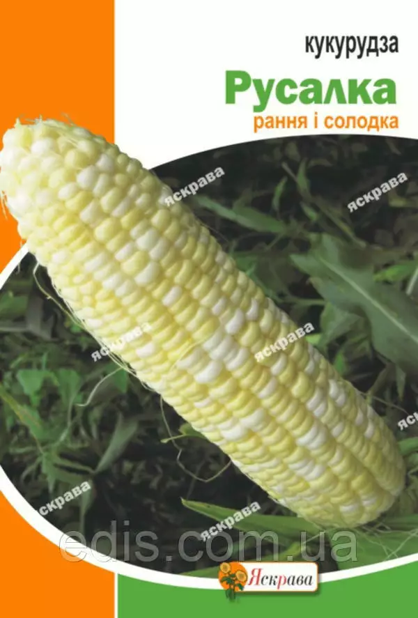Кукуруза Русалка 20 г Среднеспелый сорт. Продолжительность периода от всходов до технической спелости зерна - 80 - 90 суток. Высота стебля - 170 - 180 см. Кочан небольшой конусовидной формы. Длина початка - 16 - 18 см. Средняя масса кондиционного початка - 200 - 250 г. В технической спелости сахаров в зерне на абсолютное сухое вещество - 14 - 16 %. Это в 2 - 3 раза больше, чем в наиболее популярных сортах. Зерно в технической спелости лимонно-желтое, содержит белки, жиры, витамины, ценные аминокислоты, декстрины.Біологічні особливості. Посухостійкість і жаростійкість вище середньої. В технічній стиглості висока стійкість до вилягання.