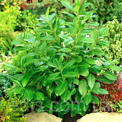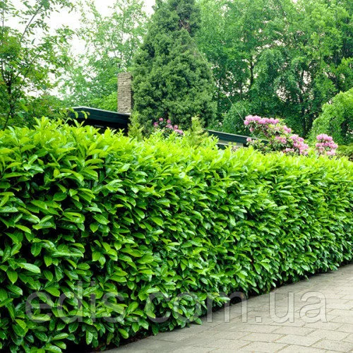 Саджанці декоративних чагарників: Лавровишня лікарська NovitaВикористовується в ландшафтному дизайні як декоративна культура. Вічнозелений чагарник з шкірястими листям, квіти та ягоди нагадують черемшину. Кущ підходить для створення зеленої паркової скульптури.