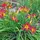 Пелюстки вузькі, внутрішні – більш широкі. Основний колір – червоно-коричневий. По центру пелюсток по всій довжині проходить світлий промінь. Горло оранжево-жовте.