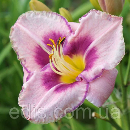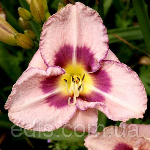 квітки світло-бузкові з ліловим оком і лілового облямівкою по краю гофрованих внутрішніх пелюсток;